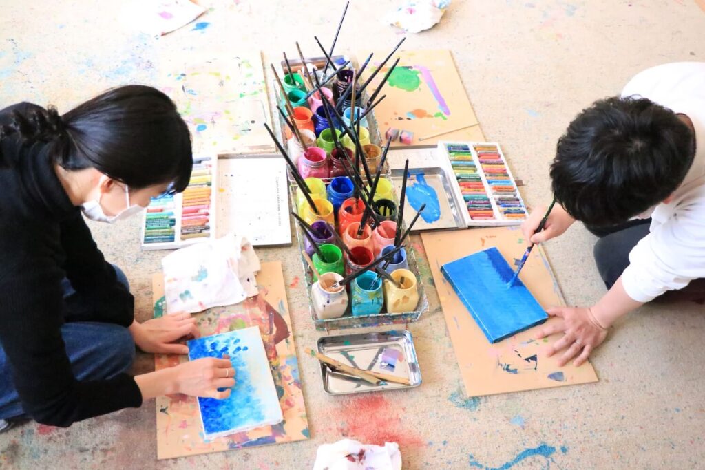 アトリエ・スノイロは、ダウン症の人たち、すべてのこどもたちが自分のリズムで 気持ち良く制作活動することのできる場です。 一人ひとりが自ら持っている、そのまま ー「素の色」=Sunoiro を感じられる場所を目指しています。